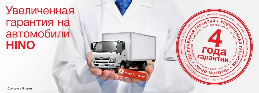 Для грузовых автомобилей HINO, приобретенных у официальных дилеров в период с 30 марта по 31 декабря 2020 года, применяется расширенный гарантийный период: